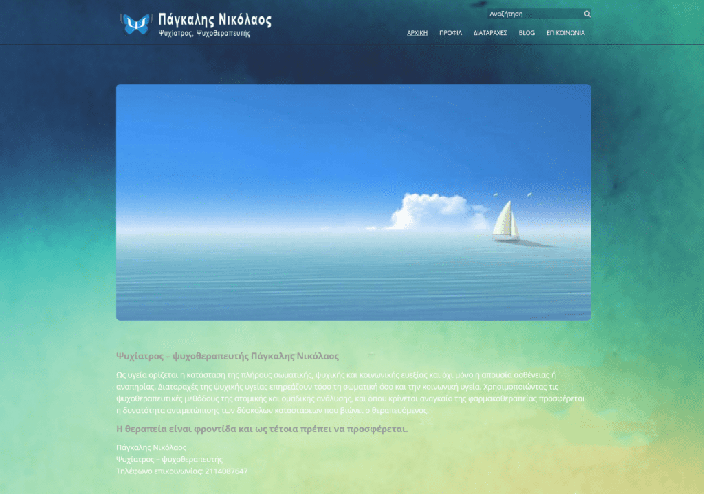 Στον ιστότοπο αυτόν, οι επισκέπτες μπορούν να ενημερωθούν για την εμπειρία, τις εξειδικεύσεις και τις υπηρεσίες που προσφέρει ο κ. Πάγκαλης Νικόλαος. Επιπλέον, η ιστοσελίδα παρέχει πληροφορίες σχετικά με τις διαθέσιμες ψυχοθεραπευτικές μεθόδους και προσεγγίσεις.