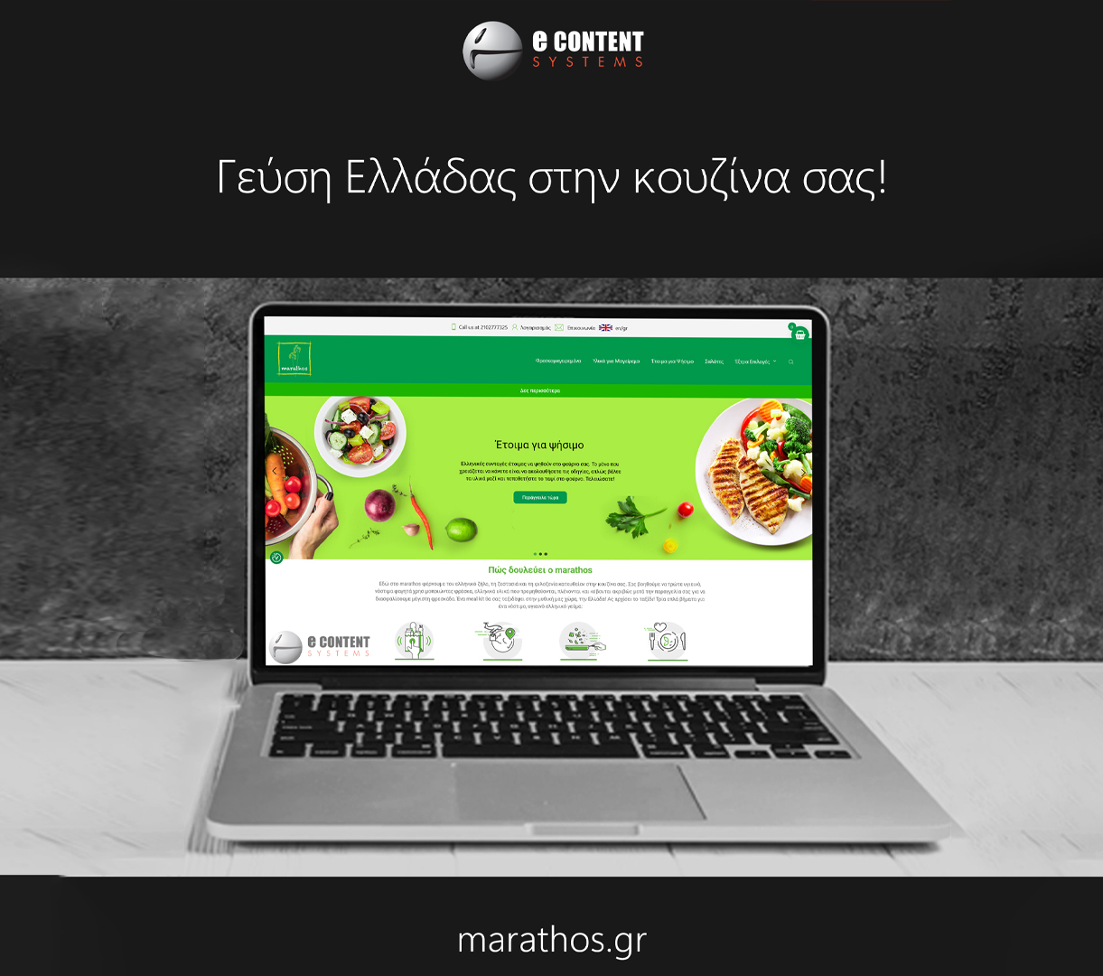 Είμαστε ενθουσιασμένοι να σας παρουσιάσουμε τη νέα ιστοσελίδα του Μαραθός, δημιουργημένη από την εξειδικευμένη ομάδα της Econtent Systems! Το Μαραθός φέρνει τον αυθεντικό ελληνικό ζήλο, τη ζεστασιά και τη φιλοξενία κατευθείαν στην κουζίνα σας, προσφέροντας μοναδικά πακέτα μαγειρικής που θα σας βοηθήσουν να δημιουργήσετε υπέροχα πιάτα με ευκολία.
