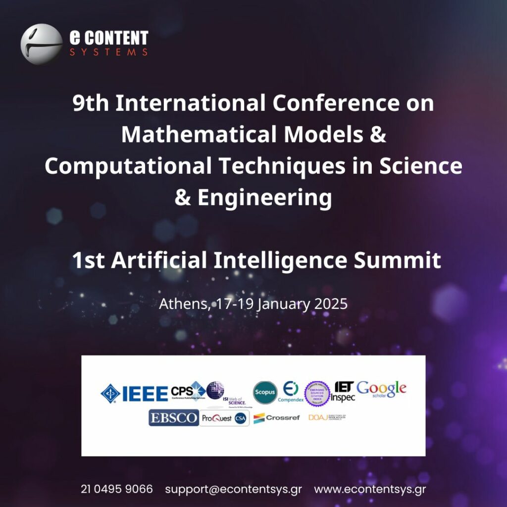 Στην Econtent Systems, η καινοτομία και η τεχνολογική πρωτοπορία βρίσκονται στο επίκεντρο της αποστολής μας. Σε αυτό το πλαίσιο, είμαστε ιδιαίτερα περήφανοι που ο CEO μας, κ. Αριστείδης Μπατής, συμμετείχε ως προσκεκλημένος ομιλητής στο 9ο Διεθνές Συνέδριο για Μαθηματικά Μοντέλα & Υπολογιστικές Τεχνικές στην Επιστήμη & τη Μηχανική (9th International Conference on Mathematical Models & Computational Techniques in Science & Engineering – MMCTSE), καθώς και στην 1η Σύνοδο Κορυφής Τεχνητής Νοημοσύνης.