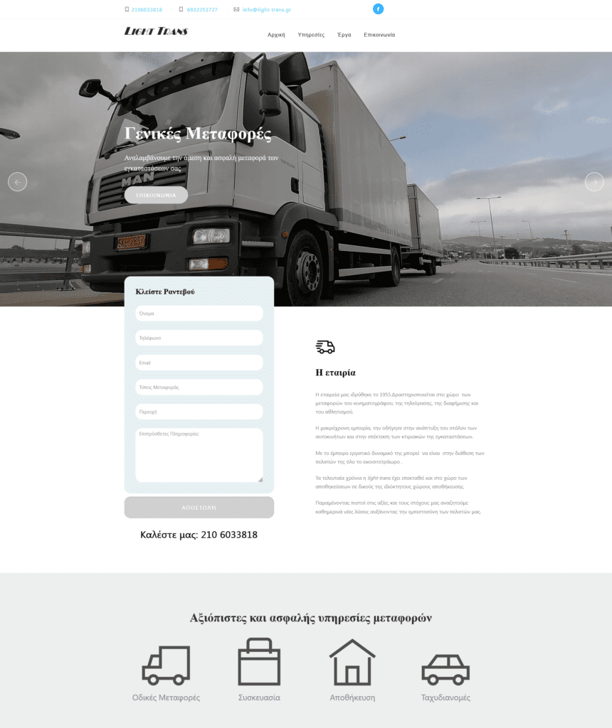 Μέσω αυτής της πλατφόρμας, η Light Trans προσφέρει μια ολοκληρωμένη πύλη πληροφόρησης και εξυπηρέτησης για τους υφιστάμενους πελάτες της. Παράλληλα, αποτελεί ένα παράθυρο ευκαιρίας για νέους πελάτες που αναζητούν υπηρεσίες στον ευρύτερο τομέα των μεταφορών και της αποθήκευσης. Με ενημερωμένο περιεχόμενο και λειτουργικότητα, η ιστοσελίδα προσφέρει στους επισκέπτες μια ολοκληρωμένη εικόνα των υπηρεσιών και των δυνατοτήτων που προσφέρει η Light Trans.