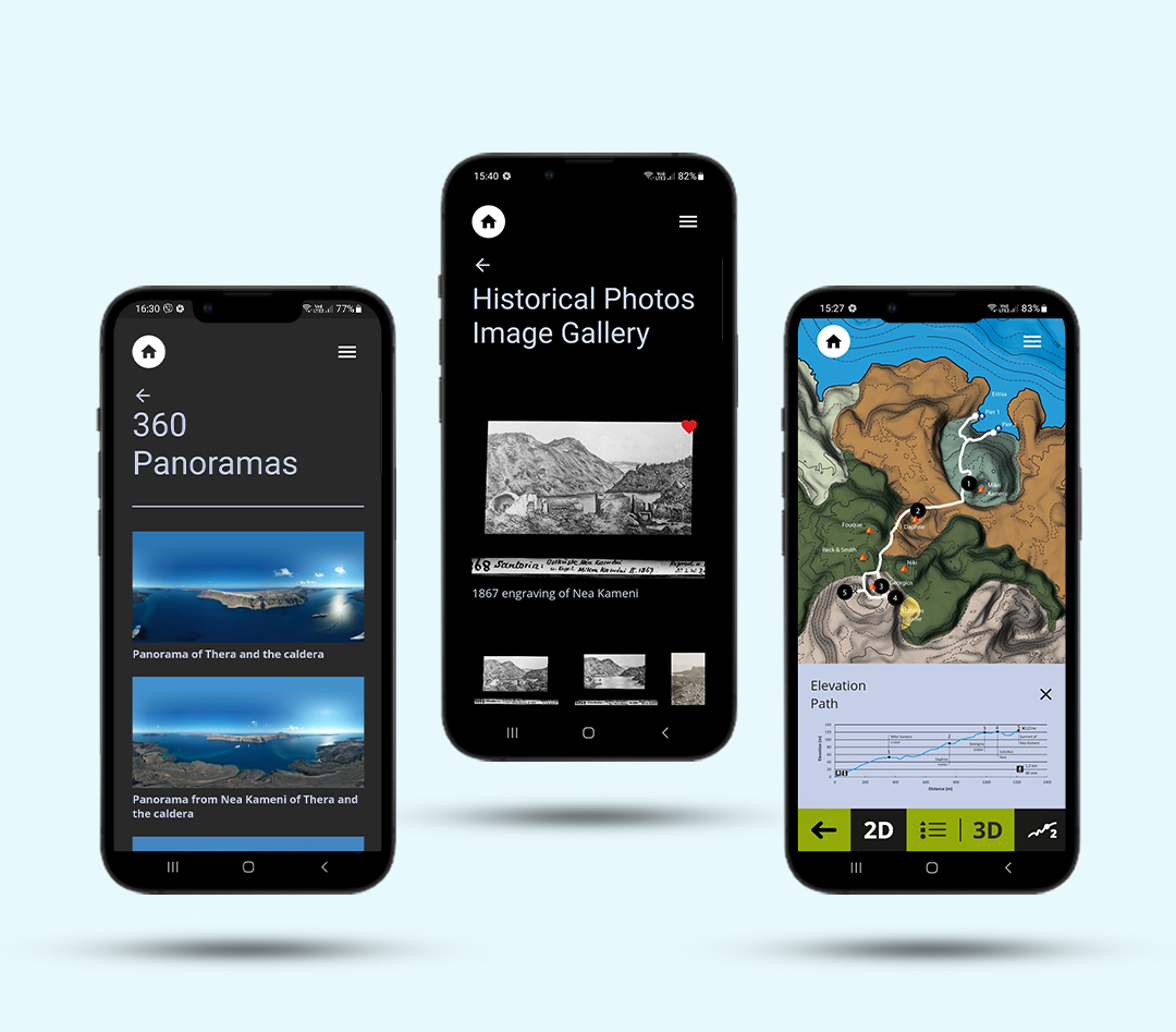 Με αυτήν την εφαρμογή, ο χρήστης μπορεί να εξερευνήσει το εντυπωσιακό ηφαιστειακό εργαστήριο της Νέας Καμένης και να μάθει περισσότερα για την εξέλιξη του μέσα από ενημερωμένο υλικό. Η εφαρμογή προσφέρει λεπτομερείς πληροφορίες για το γεωλογικό ηφαιστειακό μονοπάτι της περιοχής και τα αξιοθέατα που μπορεί να ανακαλύψει ο επισκέπτης.