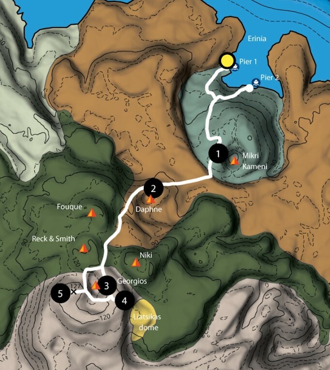 Ο οδηγός αναδεικνύει την περιπατητική διαδρομή στη Νέα Καμένη, εστιάζοντας σε πέντε σημεία ενδιαφέροντος και αναδεικνύοντας την γεωλογική ιστορία των ηφαιστειακών εκρήξεων.