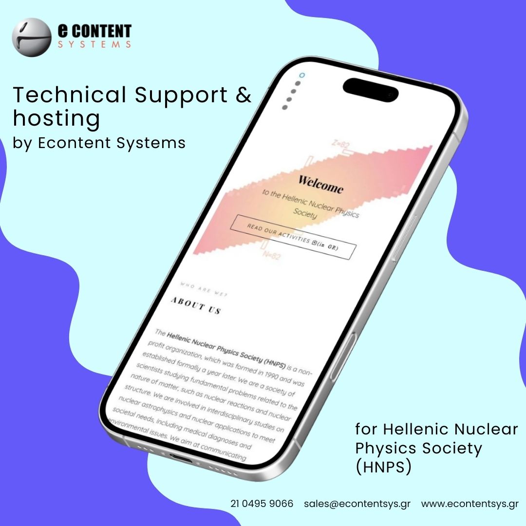 Στην Econtent Systems, είμαστε υπερήφανοι που υποστηρίζουμε οργανισμούς με υψηλό επιστημονικό και ερευνητικό έργο. Μία από τις συνεργασίες μας που μας τιμά ιδιαίτερα είναι η τεχνική υποστήριξη και φιλοξενία της ιστοσελίδας της Ελληνικής Εταιρείας Πυρηνικής Φυσικής (HNPS).