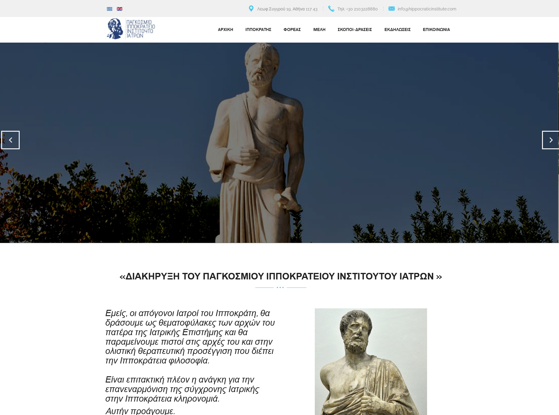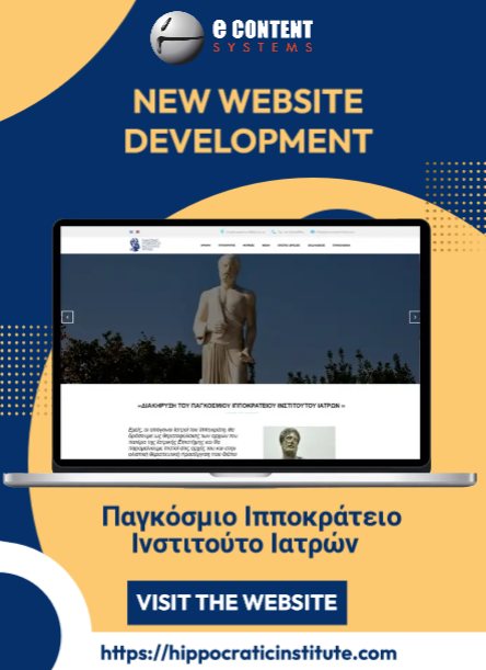 Ανακαλύψτε τον πρόσφατα εγκαινιασμένο ιστότοπο https://hippocraticinstitute.com/ από την #Econtent_Systems για το Παγκόσμιο Ιπποκράτειο Ινστιτούτο Ιατρών, το οποίο είναι αφιερωμένο στην προώθηση της οικουμενικότητας της Ιπποκρατικής Ιατρικής Επιστήμης και της Ιατρικής Σκέψης. ![]()